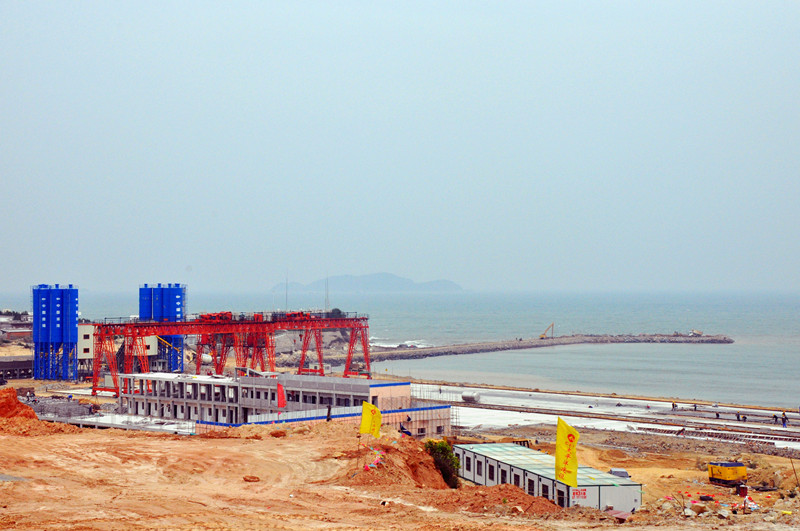東防波堤工程全長5423米,西防波堤工程全長3315米,口門寬度600米。口門堤頭段采用直立式沉箱結(jié)構(gòu),其他堤身段采用拋石斜坡堤結(jié)構(gòu),共需拋填各類石料1060萬m3,澆筑混凝土82.6萬 m3,項(xiàng)目總投資為25.45億元,建安費(fèi)17.94億元。東西防波堤建成后,形成港池面積6平方公里,岸線10850米,可建3-30萬噸級泊位30-35個(gè),設(shè)計(jì)吞吐量2億噸。