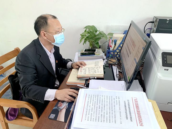 根據當地村民多年來下地勞作的習慣,他把田間地頭作為了防疫宣傳工作的重點場所。拎著小喇叭,奔走在田埂地頭的他,除了主動向村民宣傳出入佩戴口罩、減少聚集、不走村訪友等防疫要求外,還積極向村民宣講疫情最新消息,引導村民堅定信心、科學防控,做到不造謠、不信謠、不傳謠。 全村1412戶村民,他配合村委深入排查每一名村民的動向及身體狀況,從外地回來人員返鄉(xiāng)前14天的去向更是核查重點,他都詳細詢問并協(xié)助登記造冊。由于電腦操作不夠便捷,他便夾雜了一些手寫的臺賬資料,便于走村穿戶時仍能及時整理出村里人員健康動態(tài)信息并按時向上級部門報送。特別是在架炮村發(fā)現(xiàn)一名廣州返鄉(xiāng)人員與新冠肺炎確診患者有密切接觸史后,他迅速指導開展落實居家隔離措施,并每天上門跟蹤該返鄉(xiāng)人員的體溫及身體狀況,直至其解除隔離,他才大大的松了一口氣。