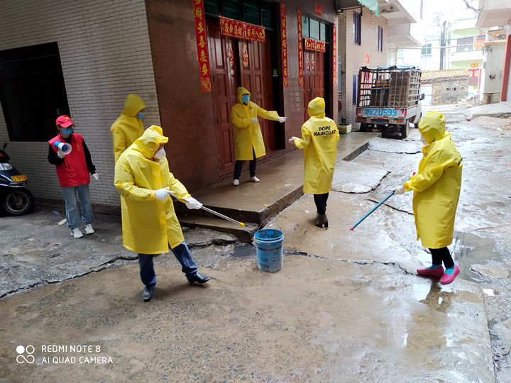 得到組織批準的當天下午,黃杰就自駕車,帶著集團捐贈社區(qū)的120斤消毒水等防疫物資趕到了南街社區(qū)居委會。一去到,他就背起了40斤重的消毒噴桶,跟著居委會工作人員開始了走街串巷的消毒工作。為加強防疫防護知識的宣傳,有長期駐村扶貧經驗的黃杰還用黎話自編了一個順口溜: