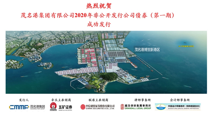 近日, 茂名港集團(tuán)有限公司2020年非公開發(fā)行公司債券(第一期)成功發(fā)行5億元,這是集團(tuán)繼2019年成功發(fā)行3億元非公開發(fā)行公司債券后再次成功發(fā)行。