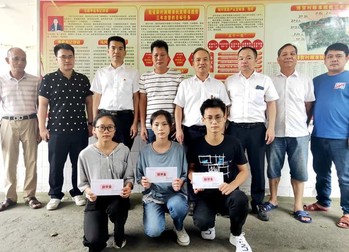 9月9日下午,根據(jù)集團(tuán)黨委工作部署,集團(tuán)工會(huì)助學(xué)工作組一行到精準(zhǔn)扶貧掛點(diǎn)村博賀鎮(zhèn)博賀村委會(huì)開(kāi)展2020年“金秋助學(xué) 圓夢(mèng)大學(xué)”愛(ài)心助學(xué)活動(dòng)。集團(tuán)通過(guò)助學(xué)活動(dòng),激勵(lì)貧困家庭扶智脫貧,為博賀村今年考上大學(xué)的3名貧困學(xué)生送去祝福和助學(xué)金,解決他們?nèi)济贾保瑘A求學(xué)之夢(mèng)。