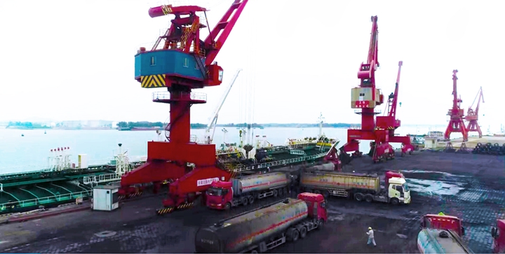 2021年元月,集團(tuán)下屬中油王港公司、港口經(jīng)營公司作業(yè)區(qū)內(nèi)裝載車輛穿梭如流、門吊裝卸不停,一派繁忙景象。