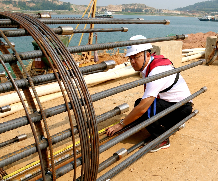 “當(dāng)時(shí),很多企業(yè)來(lái)港區(qū)考察,對(duì)我們沒(méi)有信心,認(rèn)為我們不可能把防波堤建好。”不服輸?shù)膭⒍蛋得鹆藙。為了加快施工進(jìn)度,他帶領(lǐng)團(tuán)隊(duì)在東閣嶺山上查看爆破位置,論證制定最優(yōu)運(yùn)輸方案,為了節(jié)約時(shí)間,在山上吃飯、樹(shù)下休憩是常有的事。 “你知道雞同鴨講是什么樣的嗎?”當(dāng)提及最初開(kāi)荒時(shí),劉冬忍不住笑言,最初最難的不是灘涂開(kāi)荒,不是架梁建堤,而是語(yǔ)言不通,不知所云。博賀新港區(qū)建設(shè)之初,在征地拆遷、用地、用林上,少數(shù)村民不了解政策,在得到補(bǔ)償后仍是情緒激動(dòng)、煽動(dòng)阻撓施工,到現(xiàn)場(chǎng)攔截施工車(chē)輛,甚至打砸過(guò)往通勤車(chē)。劉冬都是第一時(shí)間趕到場(chǎng)了解情況后,積極對(duì)村民進(jìn)行安撫,語(yǔ)言不通的他耐心解說(shuō),穩(wěn)定村民情緒。語(yǔ)言不通就比手勢(shì),比手勢(shì)不懂就執(zhí)筆寫(xiě)畫(huà),筆畫(huà)不懂就央求本地的語(yǔ)言“翻譯官”幫忙翻譯,他積極協(xié)調(diào)配合新區(qū)征地拆遷辦公室、項(xiàng)目協(xié)調(diào)小組,妥善化解征地過(guò)程中的各種問(wèn)題。 “辛苦?不苦!能參與茂名港的開(kāi)荒,我甘之若飴!劉冬眼神堅(jiān)定地說(shuō)。從東閣嶺的征地、東西防波堤的建設(shè)、化工碼頭的建設(shè)等等,到茂名港口岸擴(kuò)大開(kāi)放的工作任務(wù)。博賀港區(qū)的每個(gè)項(xiàng)目每一處都留下了他的足跡和汗水。他熱愛(ài)工作,敬業(yè)奉獻(xiàn),配合相關(guān)部門(mén)做好項(xiàng)目建設(shè)前期各項(xiàng)工作,全力推進(jìn)集團(tuán)各重大項(xiàng)目順利建設(shè)落地。這些項(xiàng)目的建設(shè)都凝聚著劉冬和他帶領(lǐng)的同志們的辛勤付出和敬業(yè)奉獻(xiàn)。