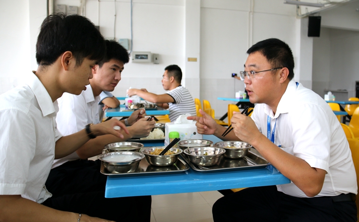 然而對(duì)劉冬而言,卻是一天緊張工作的開(kāi)始。食堂小小的餐桌成為了他的辦公桌。從商討項(xiàng)目涉及的取土、爆石等事宜,到扭王字塊制安,到各方作業(yè)關(guān)系協(xié)調(diào),再到需協(xié)調(diào)工作事項(xiàng)的處理等,他需要在上班前和同事們?cè)俎垡淮萎?dāng)天的工作安排,這成為他多年以來(lái)養(yǎng)成的就餐習(xí)慣。