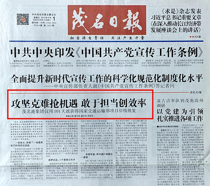 “那時(shí)候覺(jué)得挺艱難的,現(xiàn)在回想,卻是充滿了甘甜!劉冬回憶起當(dāng)年的“101天”的故事。在2019年3月底,茂名港博賀新港區(qū)總體規(guī)劃獲得批復(fù),吹響了集團(tuán)工程大建設(shè)的號(hào)角,集團(tuán)立即啟動(dòng)化工碼頭、油品碼頭的岸線申請(qǐng)、立項(xiàng)報(bào)批等工作。劉冬跟隨著集團(tuán)領(lǐng)導(dǎo)小組的周密部署,多次率集團(tuán)項(xiàng)目報(bào)批組帶齊項(xiàng)目資料拜訪省廳有關(guān)部門(mén),做到及時(shí)解答釋疑。在報(bào)審的過(guò)程中,為了使各項(xiàng)報(bào)批報(bào)建工作加快推進(jìn),劉冬帶齊資料主動(dòng)拜訪有關(guān)部門(mén),多次到國(guó)家交通部、省交通廳、省生態(tài)環(huán)境廳、省自然資源廳、市交通局等相關(guān)部門(mén)積極溝通協(xié)調(diào),隨時(shí)做好解答匯報(bào)。如在設(shè)計(jì)上,在沒(méi)有取得立項(xiàng)之前,先召開(kāi)內(nèi)部審查會(huì),先讓專(zhuān)家發(fā)現(xiàn)問(wèn)題,提前修正初步設(shè)計(jì)、施工圖設(shè)計(jì)的內(nèi)容,大大縮短了今后正式審批的時(shí)間。與設(shè)計(jì)無(wú)縫對(duì)接,急迫的文件,安排專(zhuān)人坐高鐵或者蹲點(diǎn)設(shè)計(jì)院,以最快速度取得成果。終于,在多方努力下,僅用時(shí)101天,拿到了東區(qū)油品碼頭的岸線批復(fù),創(chuàng)造了茂名的岸線批復(fù)史的一個(gè)歷史,得到了交通部、省交通廳的一致好評(píng)。 “茂名已經(jīng)盼了深水大港一百多年了,不能,也不應(yīng)該再等了。”長(zhǎng)期的奔走,讓劉冬總結(jié)出了一套工作方法——“普遍+靶向”工作法:即先普遍后攻堅(jiān)的各個(gè)擊破方式,明確主攻方向和核心突破口,并像釘子一樣深深地楔進(jìn)每一個(gè)關(guān)鍵環(huán)節(jié)。“方法很笨,但是很奏效!劉冬謙虛地介紹道“工作關(guān)鍵是溝通,溝通的關(guān)鍵在高效的往來(lái)反饋”。幾年下來(lái),劉冬在這套工作方法的支持下,參與推動(dòng)博賀新港區(qū)東西防波堤、化工碼頭建設(shè)、30萬(wàn)噸原油碼頭等項(xiàng)目的報(bào)批報(bào)建、茂名港口岸擴(kuò)大開(kāi)放等工作圓滿落地。