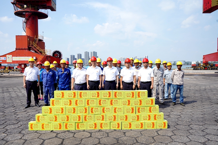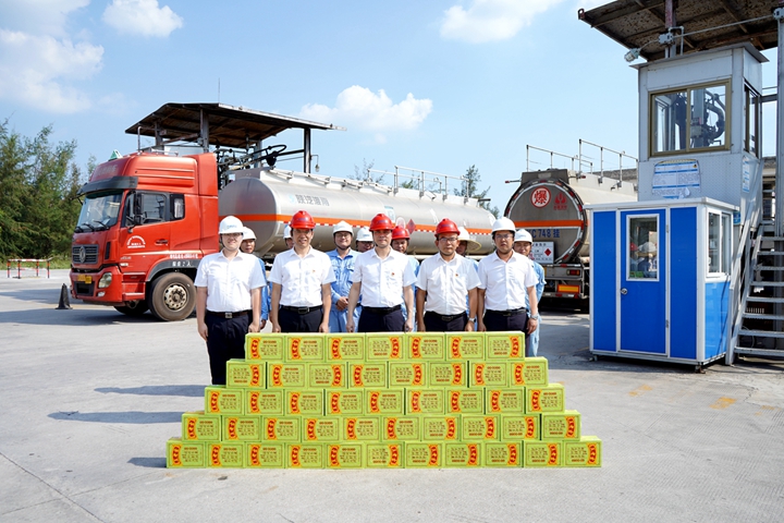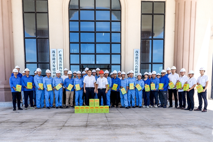 近日,茂名港集團(tuán)黨委副書(shū)記、總裁肖炳璋,茂名港集團(tuán)黨委委員、副總裁、工會(huì)主席楊超燦分別帶隊(duì)到集團(tuán)下屬港口經(jīng)營(yíng)公司碼頭作業(yè)現(xiàn)場(chǎng)、中油王港公司庫(kù)區(qū)、博賀新港區(qū)重點(diǎn)項(xiàng)目施工現(xiàn)場(chǎng)等處“送清涼”,向奮斗在一線的職工傳達(dá)集團(tuán)黨委、集團(tuán)工會(huì)的問(wèn)候與關(guān)懷,并為他們發(fā)放充足的解暑飲料。
