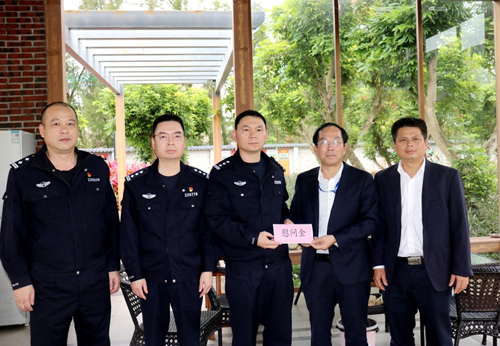 在濱海新區(qū)公安分局,蔡光章向?yàn)I海新區(qū)公安分局全體民輔警致以節(jié)日的祝福和誠摯的問候,對奮戰(zhàn)在維護(hù)社會穩(wěn)定一線的公安民警一直以來積極履職盡責(zé),在打擊違法犯罪、維護(hù)轄區(qū)治安穩(wěn)定、保障人民安居樂業(yè),對企業(yè)發(fā)展創(chuàng)造良好穩(wěn)定的社會環(huán)境等方面作出的貢獻(xiàn)表示由衷的感謝和崇高的敬意。希望濱海新區(qū)公安分局一如既往地關(guān)心和支持企業(yè)的發(fā)展,營造穩(wěn)定和諧的社會治安環(huán)境,共同譜寫茂名產(chǎn)業(yè)強(qiáng)市向海而興濱海綠城新篇章。