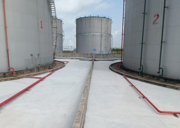 1#、2#、3#油罐區(qū)的硬底化工程也是本次優(yōu)化建設的重要一環(huán)。通過對油罐區(qū)地面進行硬化處理,增強了地面的承載能力和抗?jié)B性能,同時各油罐間防火堤的完工,為庫區(qū)提供了安全可靠的防火保障。