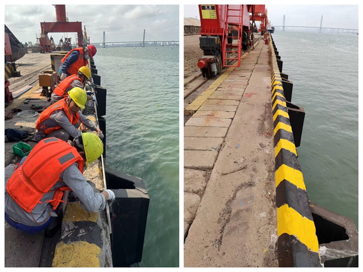 在日常安全巡查中,發(fā)現(xiàn)港口經(jīng)營(yíng)公司萬(wàn)噸級(jí)碼頭前沿?cái)r水坎,出現(xiàn)局部混凝土損壞、鋼筋裸露的情況,若不及時(shí)修復(fù),將對(duì)海洋安全產(chǎn)生環(huán)境污染。按常規(guī)流程,該項(xiàng)修復(fù)工作費(fèi)用高、工期長(zhǎng)且需外委專(zhuān)業(yè)施工隊(duì),但公司黨支部在“書(shū)記項(xiàng)目”推進(jìn)會(huì)上明確要求:“在確保安全與質(zhì)量的前提下,能自主完成的絕不外委!”港口經(jīng)營(yíng)公司黨支部書(shū)記劉芳芳主動(dòng)領(lǐng)題,牽頭組織黨員干部,集結(jié)涵蓋結(jié)構(gòu)工程、機(jī)械維修、安全管理等專(zhuān)業(yè)的黨員技術(shù)骨干,把“硬骨頭”變成“練兵場(chǎng)”。 “攔水坎修復(fù)要兼顧船舶靠泊時(shí)產(chǎn)生的擠壓碰撞力,混凝土配比、鋼筋加固都得精準(zhǔn)!秉h支部組織委員、副總經(jīng)理黎陽(yáng)生是港口經(jīng)營(yíng)公司技術(shù)“總工程師”,他帶著黨員維修組白天測(cè)量損壞面積、記錄鋼筋變形數(shù)據(jù),晚上研究修復(fù)技術(shù)規(guī)范,反復(fù)驗(yàn)算修復(fù)方案。為節(jié)省成本,他們翻遍倉(cāng)庫(kù)“淘”出閑置的高強(qiáng)度螺紋鋼,自主切割焊接;利用碼頭現(xiàn)有的混凝土攪拌設(shè)備,按實(shí)驗(yàn)配比調(diào)配修補(bǔ)材料,經(jīng)過(guò)多次試驗(yàn),最終確定“基層清理+鋼筋網(wǎng)加固+分層澆筑+防水警示涂層”的修復(fù)工藝。