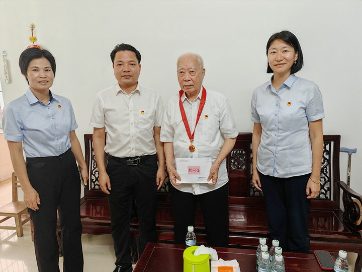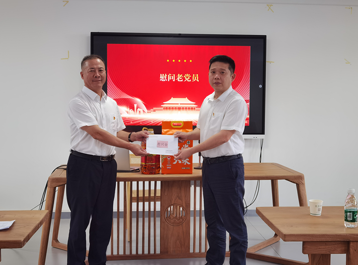 七月流火,黨旗飄揚。在這個充滿榮光與紀(jì)念意義的偉大日子——慶祝中國共產(chǎn)黨成立104周年,集團(tuán)黨委懷著崇高的敬意與深切的關(guān)懷,組織開展了“七一”送關(guān)懷慰問活動,為集團(tuán)老黨員和困難黨員送上節(jié)日的誠摯問候和溫暖的慰問品,向他們致以最崇高的敬意,讓組織的關(guān)懷如春風(fēng)化雨,滋潤心田。集團(tuán)領(lǐng)導(dǎo)班子成員分別帶隊走訪慰問老黨員、困難黨員共4人。 在走訪過程中,集團(tuán)領(lǐng)導(dǎo)班子成員與他們親切交談,詳細(xì)了解黨員的身體狀況、家庭生活情況和實際困難,叮囑他們要保重身體,保持積極樂觀的心態(tài),并送上慰問金和米、油物資,讓他們感受到集團(tuán)黨委始終牽掛他們的生活,感謝他們?yōu)辄h的事業(yè)和集團(tuán)發(fā)展作出的貢獻(xiàn)。