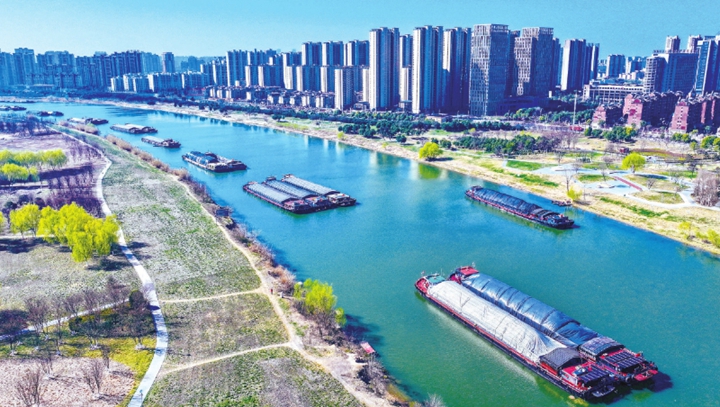 8月6日,記者從阜陽海事(港航)中心獲悉:1月至6月,阜陽港口完成吞吐量410.41萬噸,同比增長48.55%。其中,出港99.33萬噸,同比增長61.79%;進(jìn)港311.08萬噸,同比增長43.77%。煤炭、化工品、化肥農(nóng)藥吞吐量同比增幅顯著,分別達(dá)139%、338%、645%。 剛過上午9時,阜陽港潁州港區(qū)作業(yè)區(qū)已忙得熱火朝天。貨車、半掛車滿載小麥,從三區(qū)五縣匯聚于此。經(jīng)檢驗、過磅,金黃的小麥被運往碼頭,在傳輸帶的轟鳴聲中,裝上貨輪,駛向遠(yuǎn)方。 “近期,每天有200噸至300噸小麥通過水運發(fā)往廣東、廣西、湖南、湖北等地!备逢柺胸斬S糧食購銷有限公司負(fù)責(zé)人陶潁介紹,自2018年入駐潁州港區(qū)并簽訂水運協(xié)議以來,公司水運業(yè)務(wù)不斷拓展,目前每年通過水運銷售小麥2萬噸、玉米1萬噸!耙凰邑涊喣苎b載約2000噸貨物,相當(dāng)于30多節(jié)火車車廂,但相比鐵路運輸,每噸貨物運費可節(jié)省10元至20元! 碼頭一端,一艘來自周口的1200噸級貨輪剛完成39個集裝箱的卸載,又趕忙裝載63個集裝箱,準(zhǔn)備駛往蚌埠;另一端,河南金山化工的農(nóng)用氯化銨噸包正通過門座式起重機,穩(wěn)穩(wěn)裝上貨輪。阜陽潁州港務(wù)有限公司執(zhí)行董事何沭剛表示,目前潁州港區(qū)年吞吐量達(dá)115萬噸,糧食、化肥、磁材等貨物經(jīng)沙潁河、淮河通江達(dá)海,航線覆蓋上海、蕪湖、周口等地,讓內(nèi)陸企業(yè)在“家門口”就能享受“出?凇钡谋憬荨#▉碓矗褐袊\報)